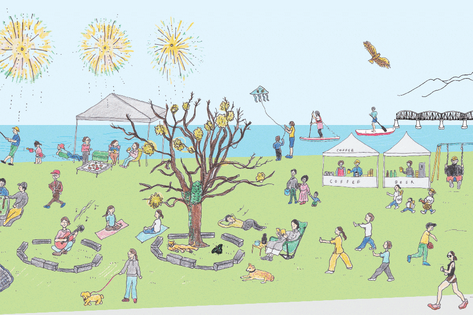 川辺を楽しむ、人が行き交う商店街、新たな出会いが生まれる駅前空間が連動することで、訪れる人も暮らす人も、まちなかで自分らしい楽しみやあそびを見つけられる“選ばれるエリア”を目指しています。