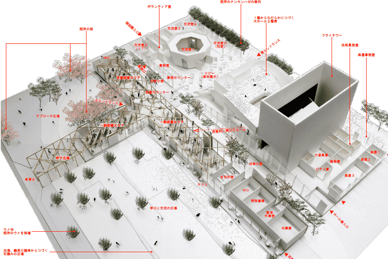 現在の図書館は、老朽化などにより、利用者に不便をおかけしている状況です。誰もが気軽に、そして居心地よく感じられる場所としてはもちろん、創造性にあふれた地域の知の拠点として、新たな図書館を整備します。