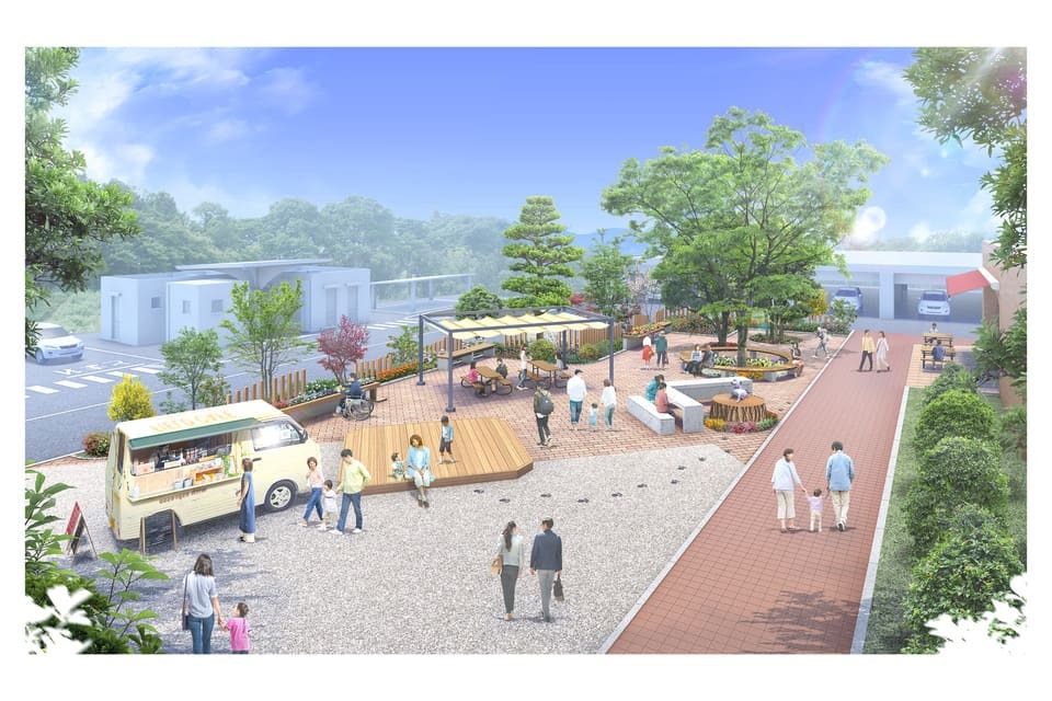 幸田町がより賑わいと活気の溢れるまちとなるよう、役場庁舎前の庭園にどなたでもご利用できるオープンスペースをつくることとしました。