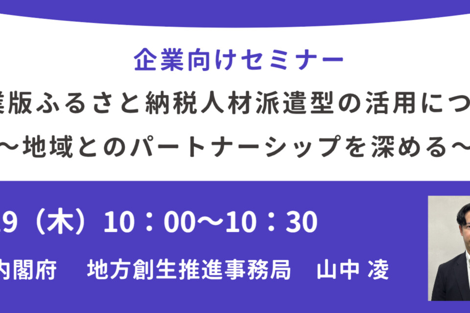 内閣府登壇!【企業向け】企業版ふるさと納税人材派遣型の活用について~地域とのパートナーシップを深める~_20240919(シリーズセミナー)